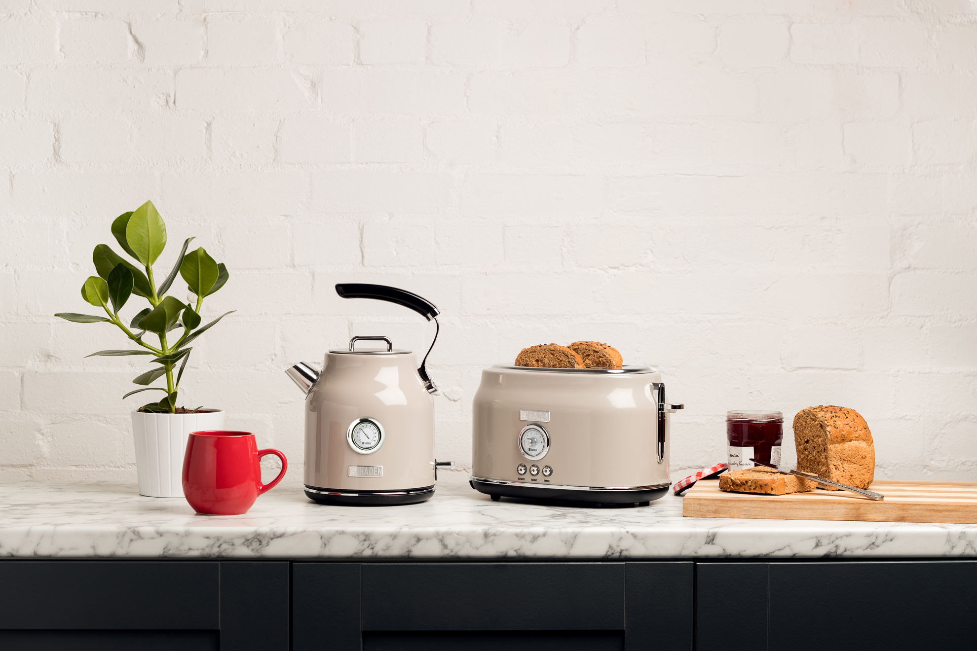 vybavena ergonomickou rukojetí pro snadné uchopení, led kontrolkou varu vody v konvici a praktickou 360° základnou<br/>retro prvky, jako...">