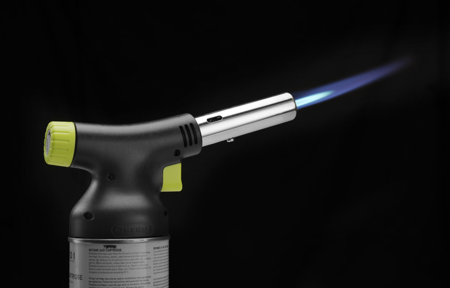 tento hořák na Creme-Brülée může být použit v libovolném úhlu, dokonce i dnem vzhůru, aniž by vzplanul díky zdokonalenému designu