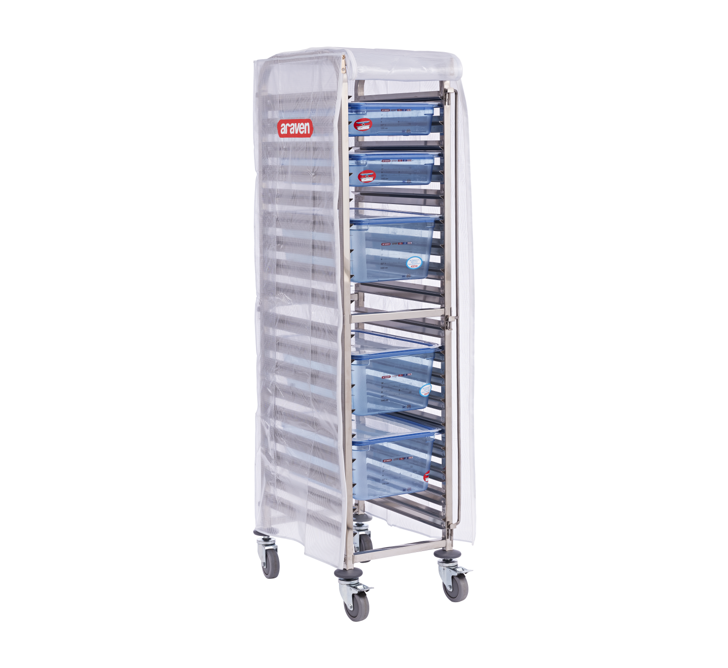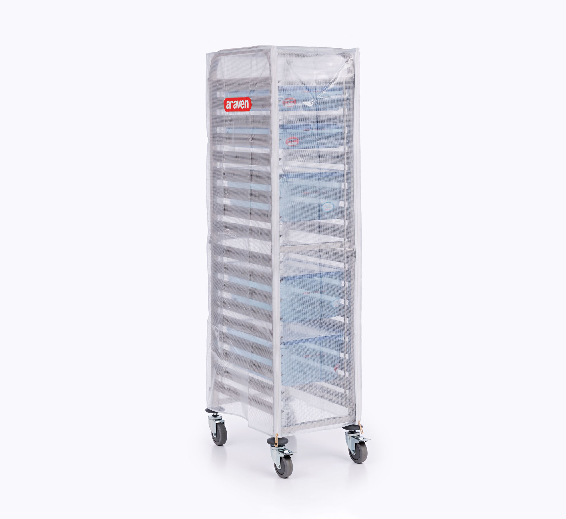 vyroben z odolných, snadno omyvatelných materiálů (PVC), perfektně sedí na vozík a zajišťuje hygienickou přepravu a skladování