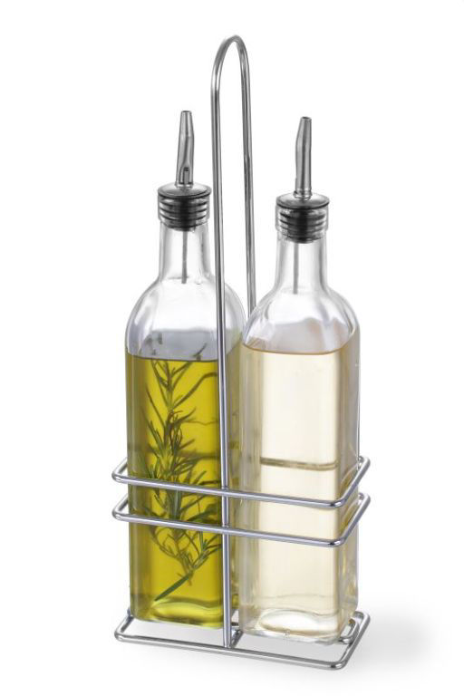 2 skleněné dávkovače na ocet/olej s víčkem z nerezové oceli