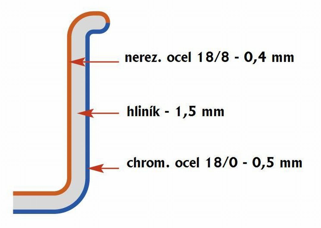 velmi odolná díky 3 vrstvám materiálu<br/>dlouhá dutá rukojeť z nerezové oceli<br/>ploché dno 145 mm">